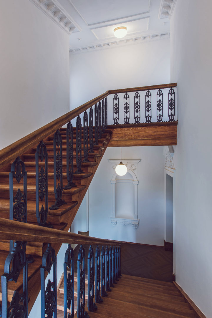 - drobiazgowo przeprowadzona renowacja drewnianych klatek schodowych