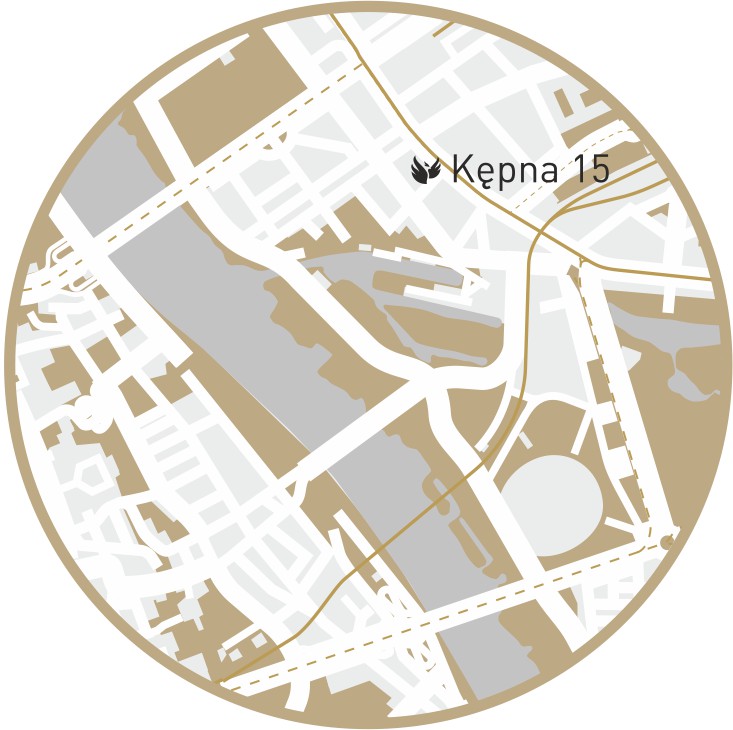 Mieszkańcy kamiency przy Kępnej 15 mają do swojej dyzpozycji niedaleki Park Skaryszewski z jeziorkiem i cichymy alejkami, warszawskie ZOO, Ośrodek Sportu i Rekreacji Prawy Brzeg, i piaszczyste plaże Wisły. W pobliżu znajdziesz też Centrum Praskie Koneser – odrestaurowany kompleks poprzemysłowy z muzeami, galeriami, restauracjami (m.in. Ferment Praski, Syreni Śpiew, Koneser Grill) i barami.
