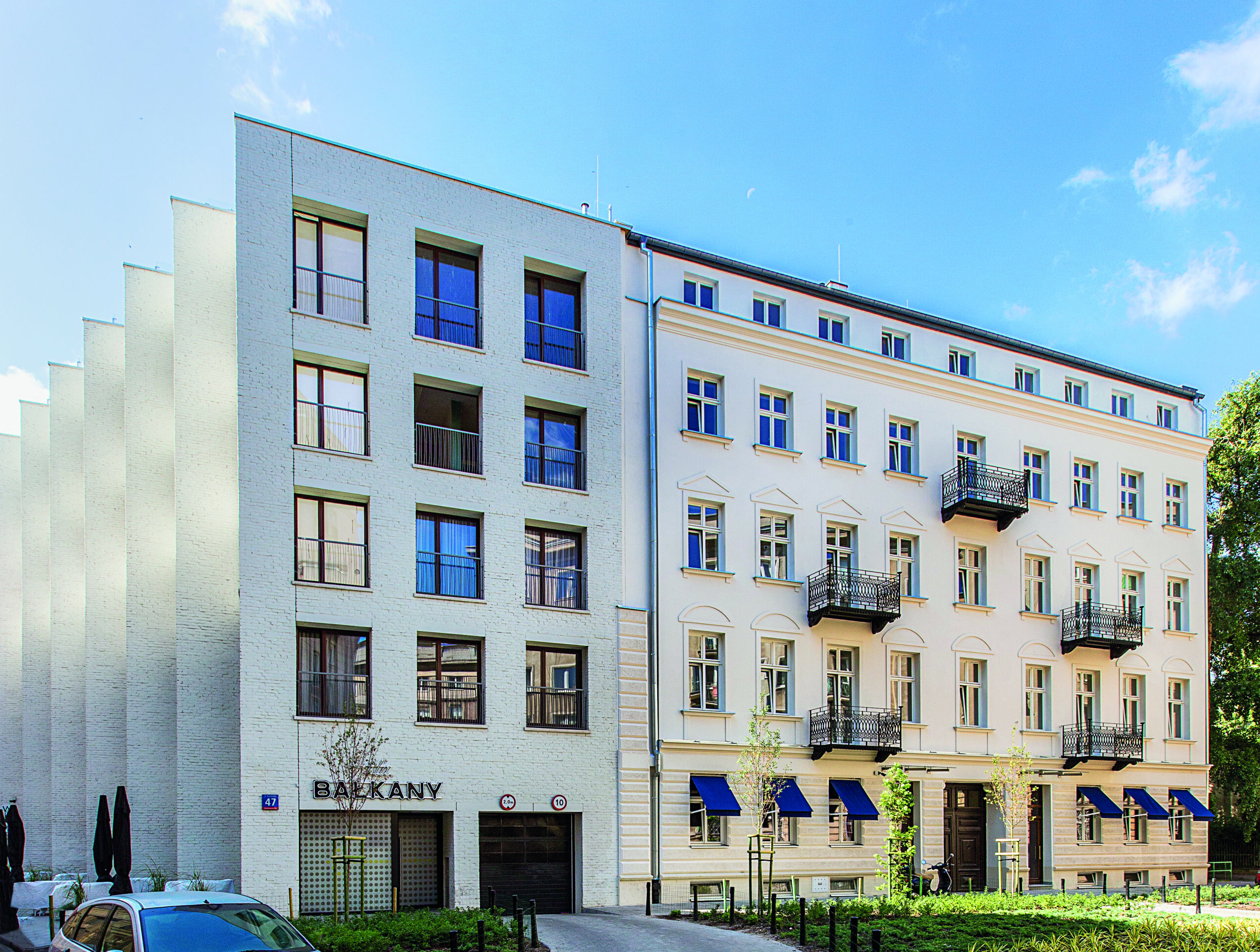 Nieruchomość przy ul. Koszykowej 47/49A składa się z odrestaurowanego budynku oraz dobudowanej nowej części, która bezpośrednio przylega do zabytkowej kamienicy, domykając tym samym jej wewnętrzny dziedziniec