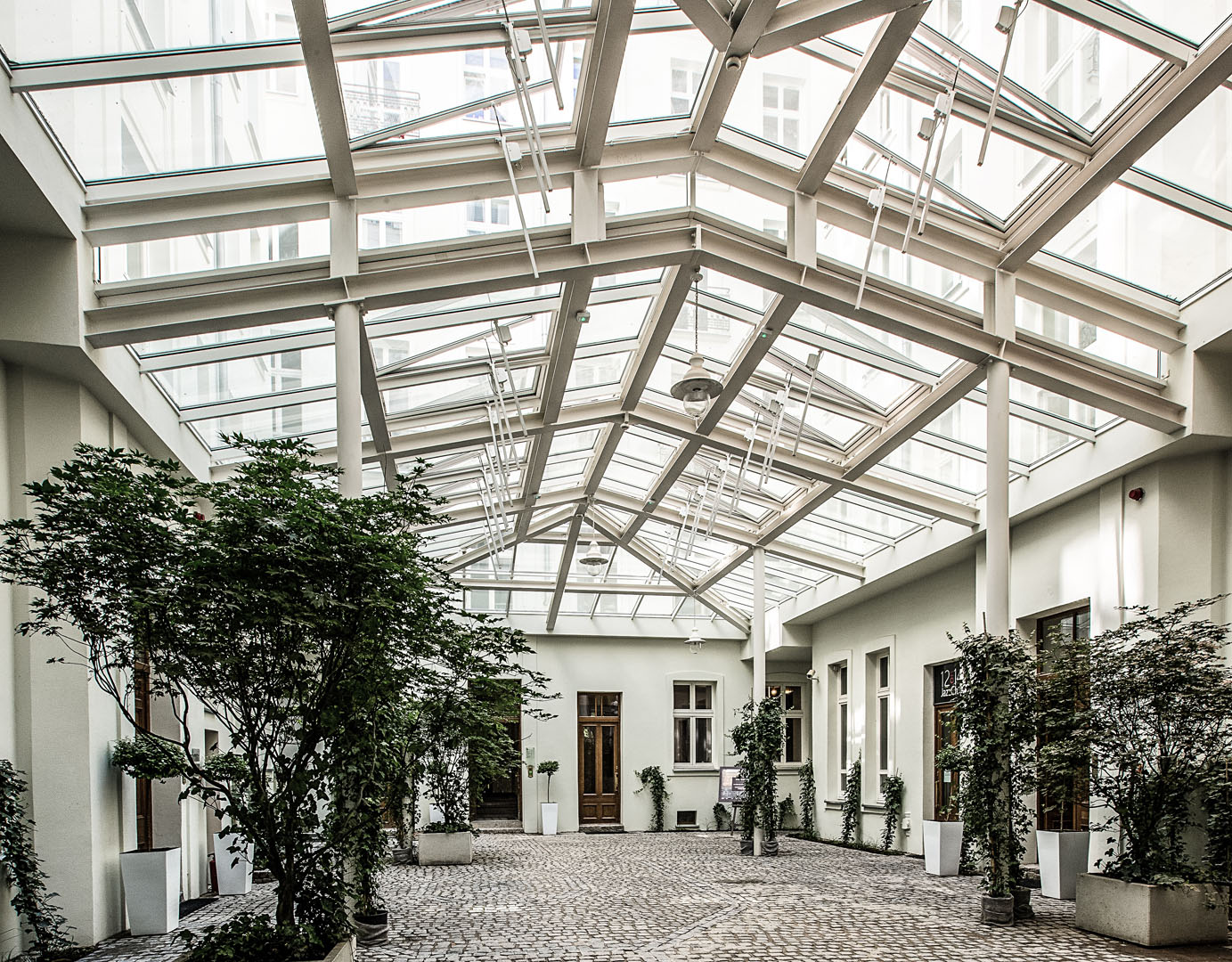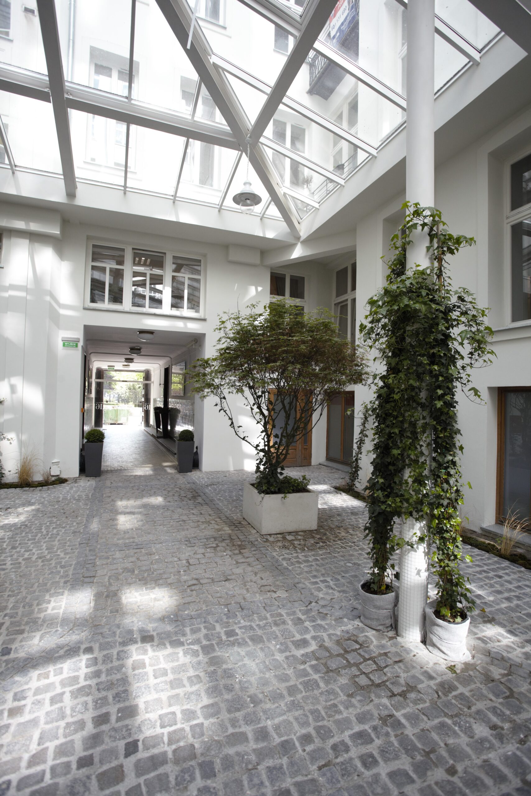 - odrestaurowany i zagospodarowany dziedziniec z historyczną kostką brukową