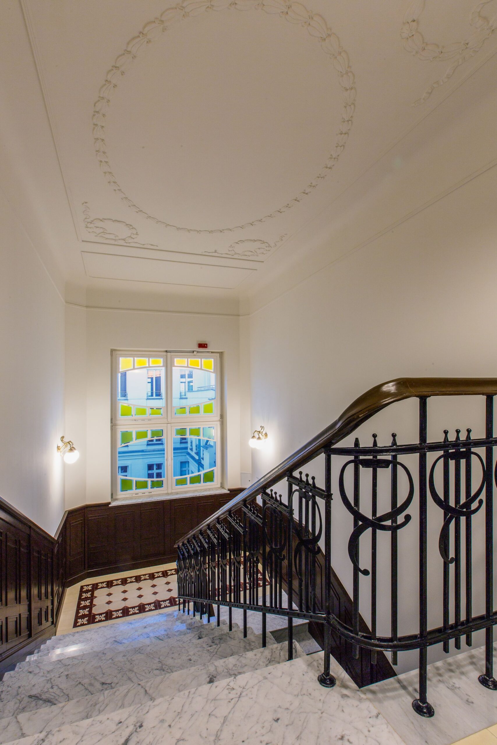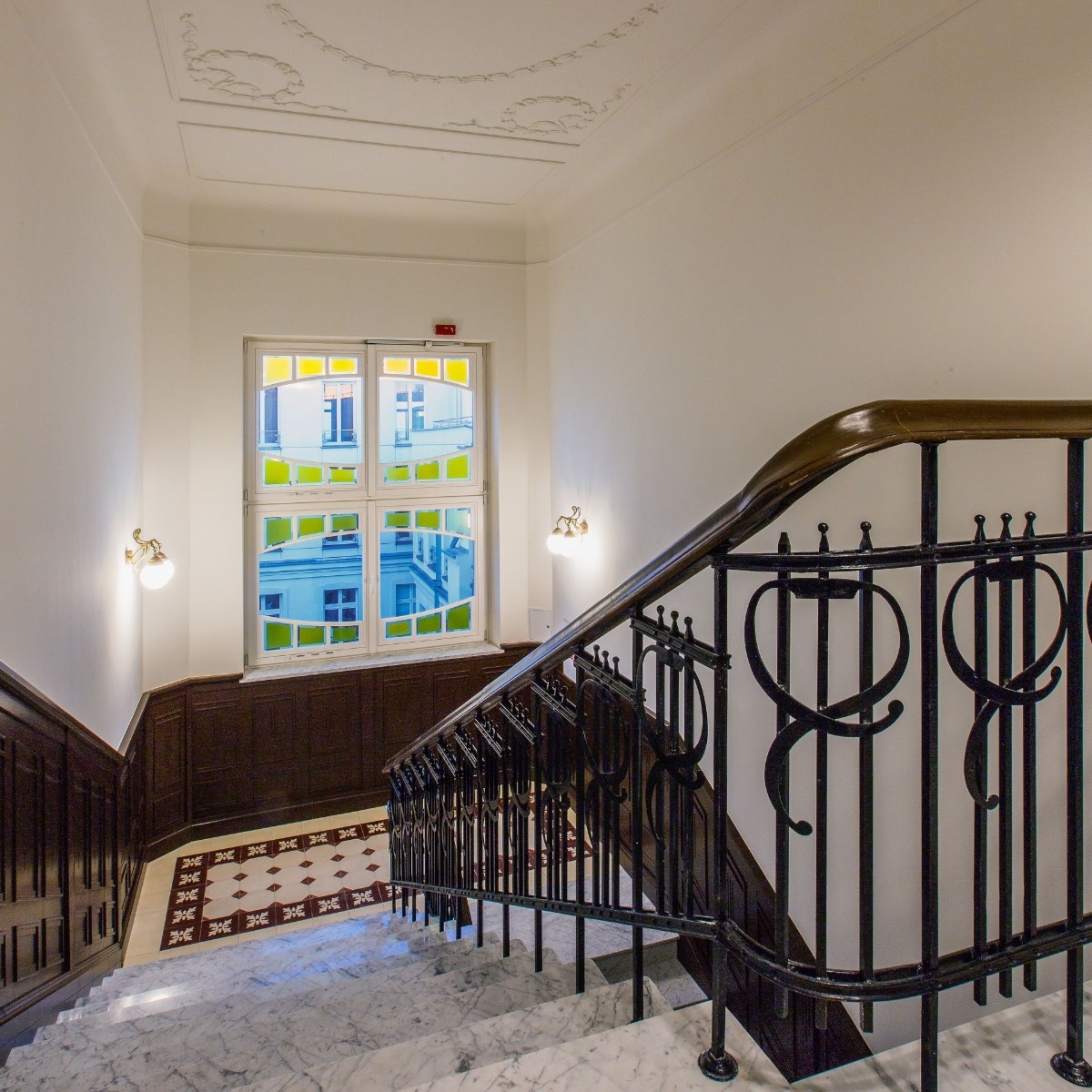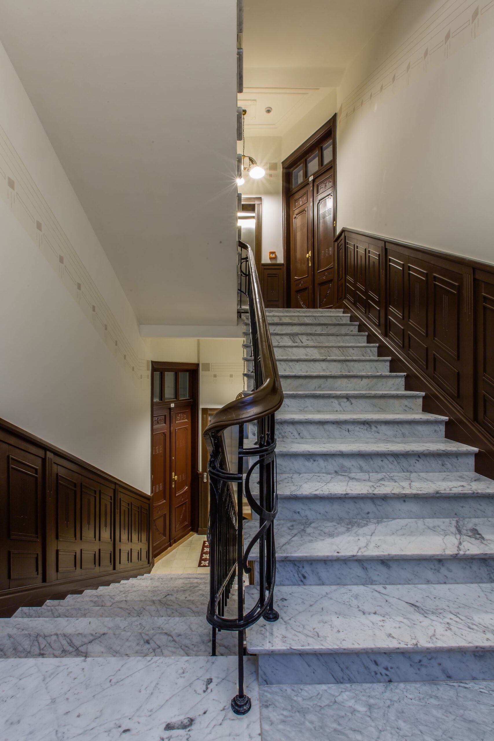 - odrestaurowane klatki schodowe wraz z dekoracjami i elementami sztukatorskimi, balustradami i marmurowymi lub drewnianymi parapetami, zgodnie ze stylistyką epoki