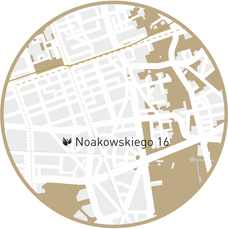 Noakowskiego 16 to prestiżowy adres w sercu Śródmieścia Południowego – kamienica mieści się tuż obok Politechniki Warszawskiej, a z jej okien rozpościera się imponujący widok na odrestaurowaną Halę Koszyki, z wyższych pięter na Pałac Kultury i Pole Mokotowskie.