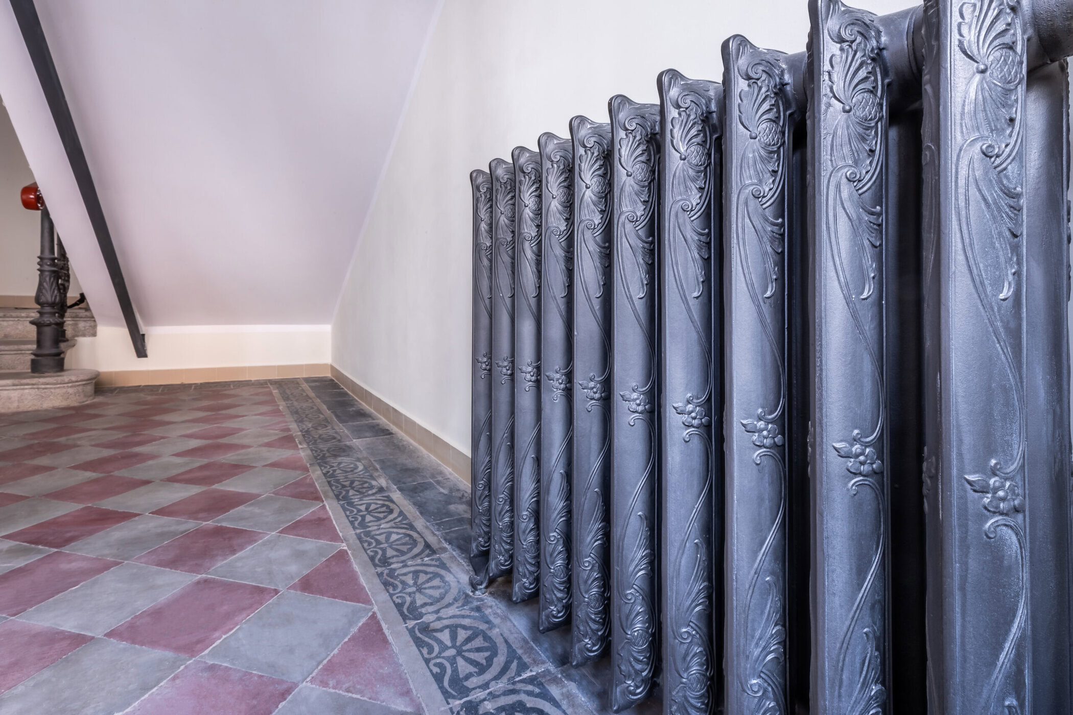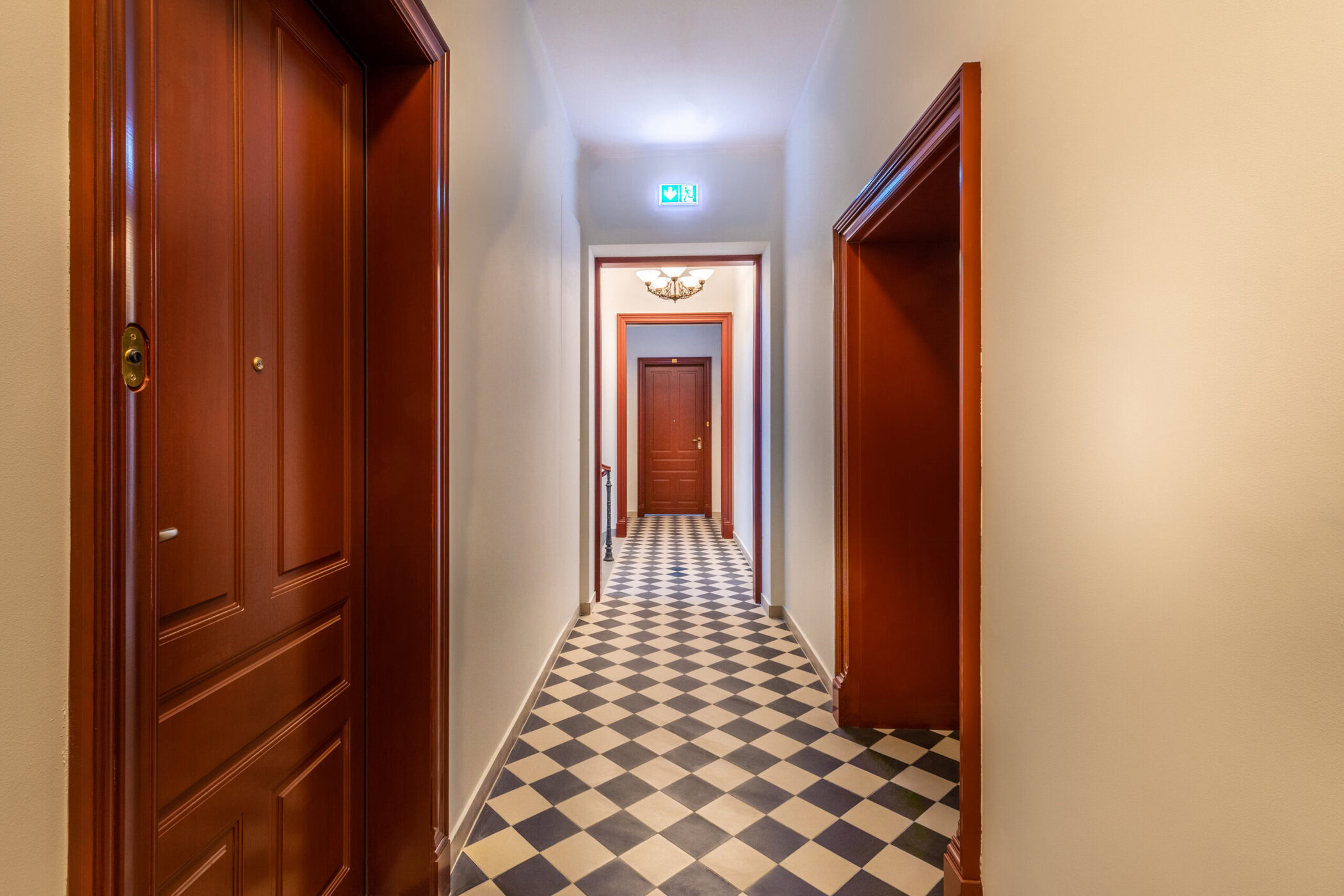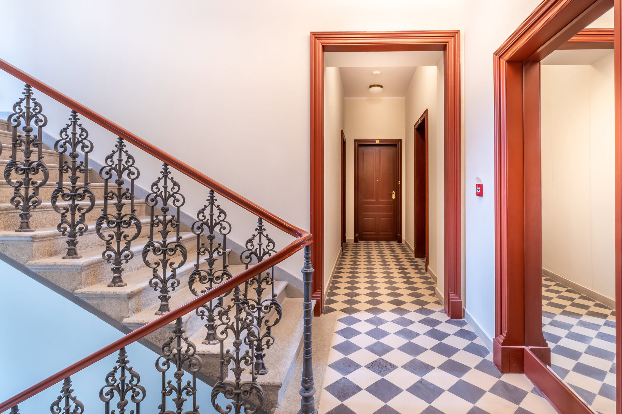 - rzemieślniczo odnowiona sztukateria, elementy drewniane i metalowe w częściach wspólnych