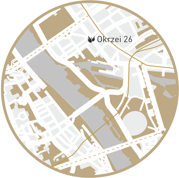 Zabytkowy budynek przy ulicy Okrzei 26, który przypomina czasy tramwajów konnych, znajduje się po wschodniej stronie Wisły, w dynamicznie rozwijającym się obszarze, nieopodal Portu Praskiego.