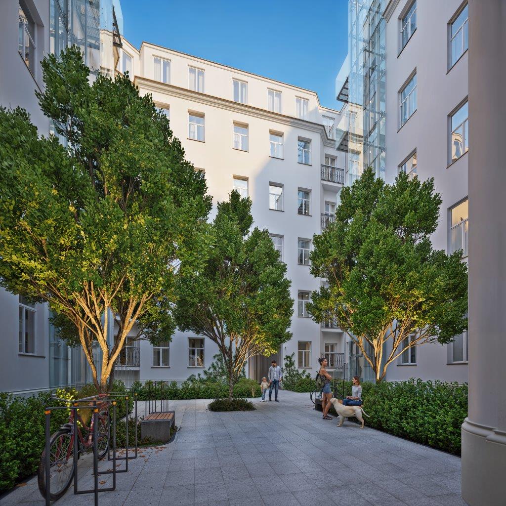 - 7 piętrowa kamienica w stylu neobarokowy z trzema podwórkami
