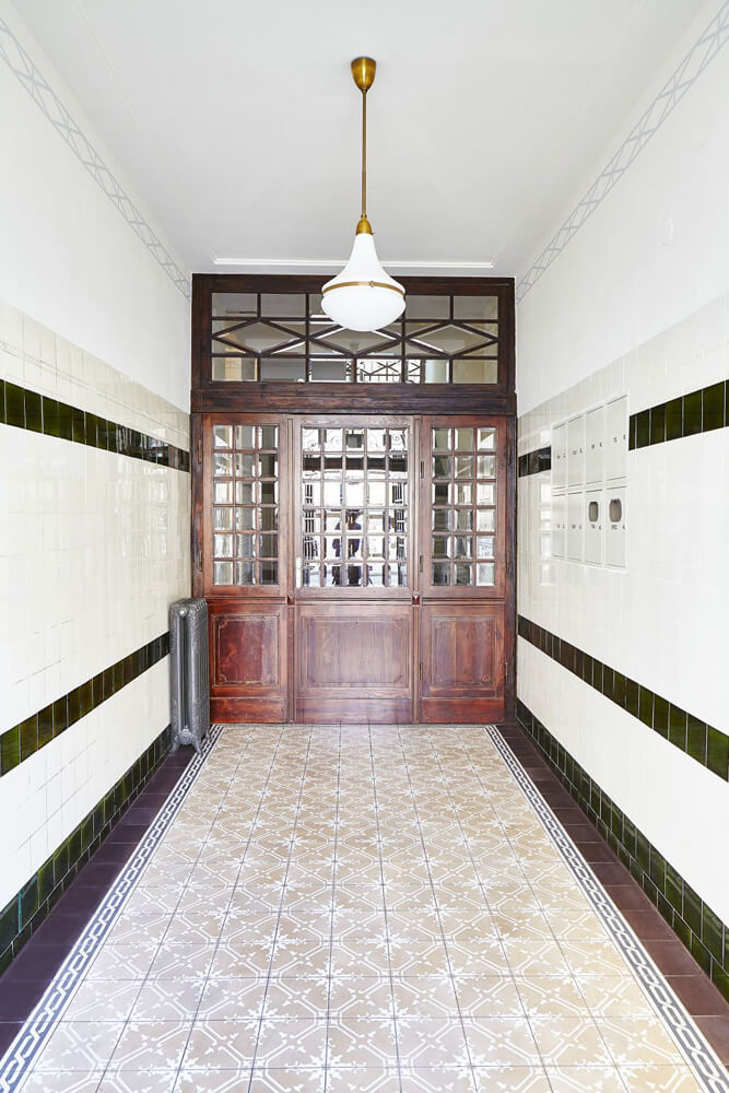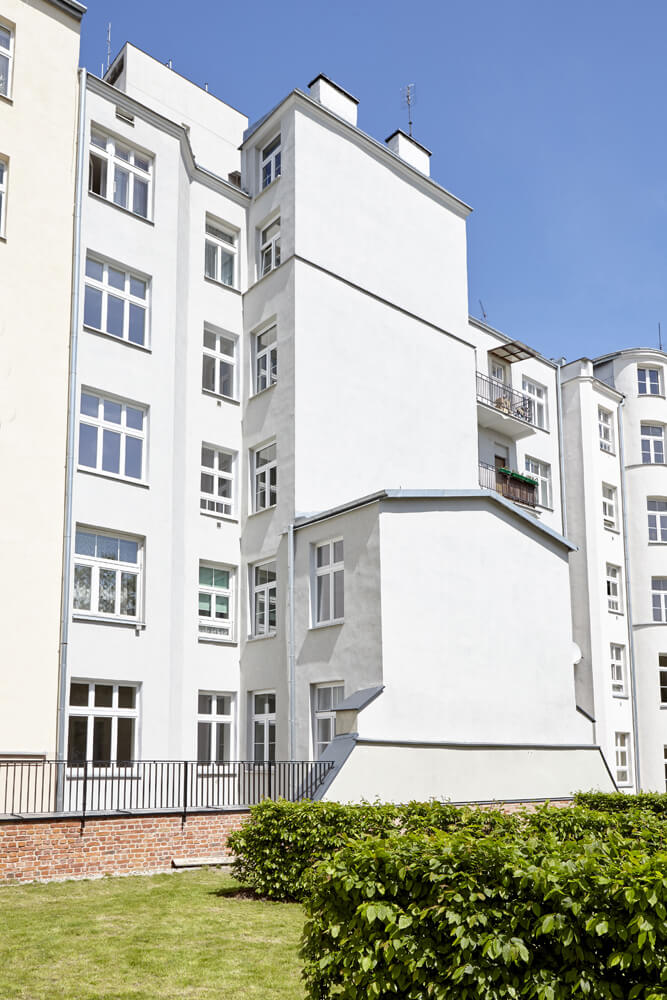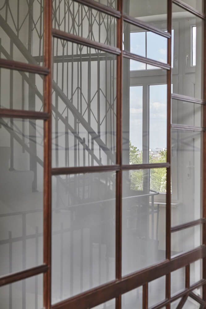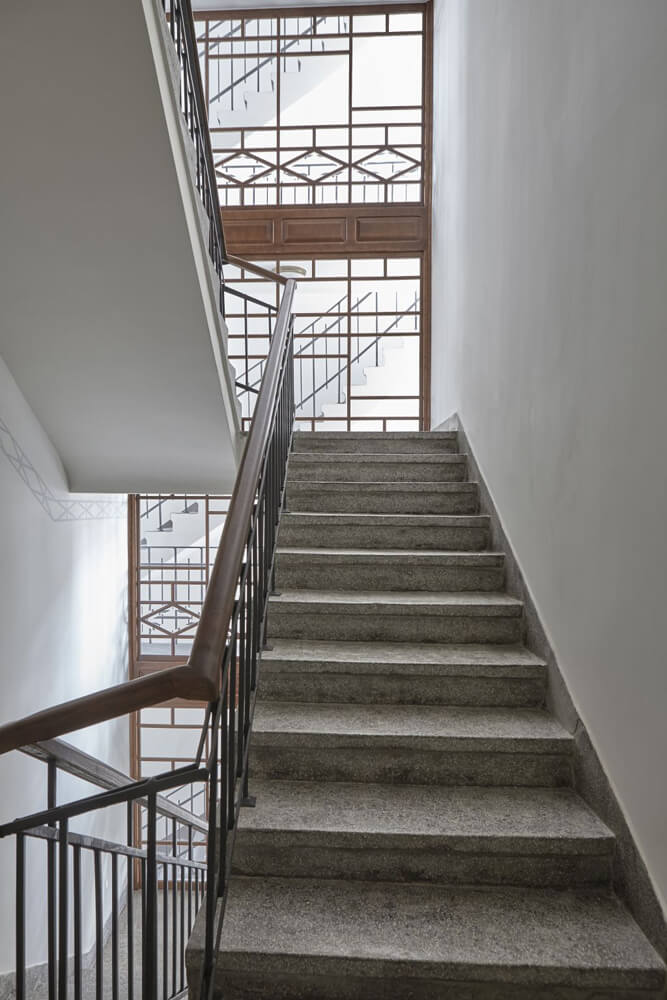 W kamienicy na klatkach schodowych zachowały się oryginalne schody z lastrico wraz z kutą balustradą. Uwagę przykuwa również oryginalna kryształowa szyba oddzielająca klatki schodowe.