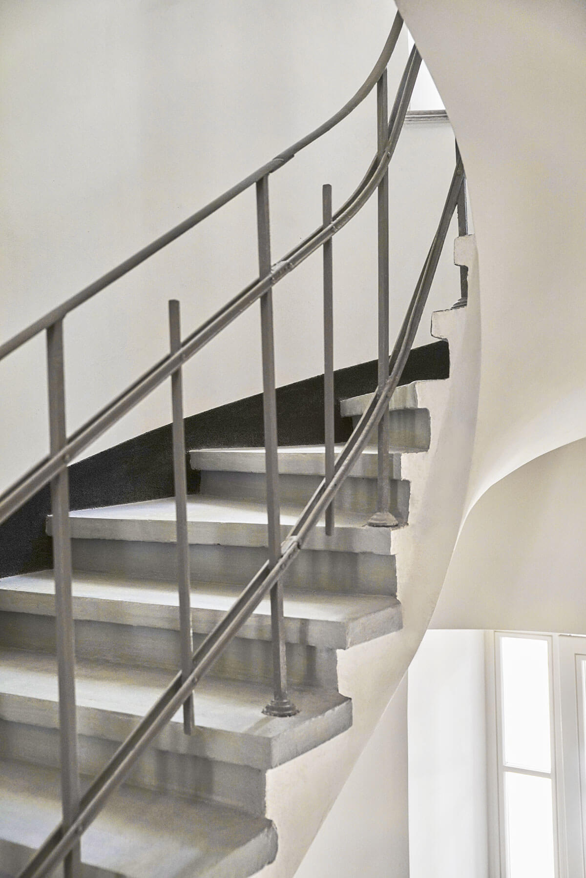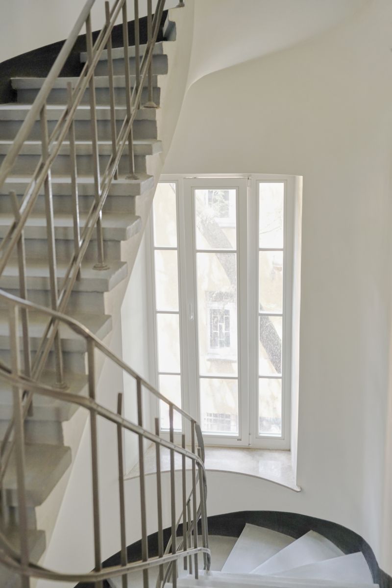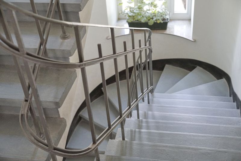 - odnowiony pierwotny wystrój klatki schodowej: metalowe pręty łączone drewnianym pochwytem, lastrico na schodach