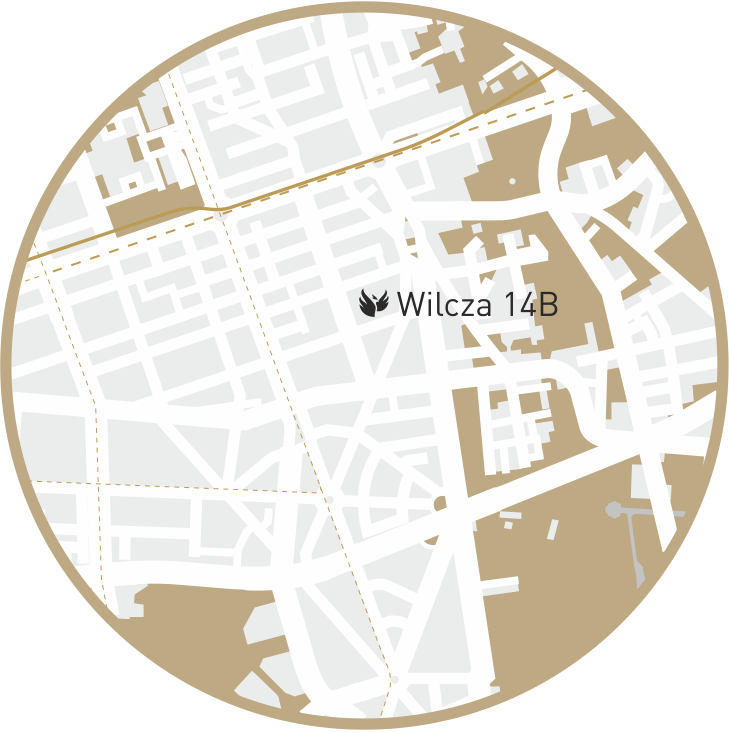 Budynek przy Wilczej 14B położony jest w ścisłym centrum Warszawy. Okolica jest spokojna, a jednocześnie pełna miejskich udogodnień, idealnie łącząc wygodę z prestiżem lokalizacji.
